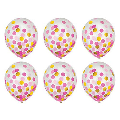 Amscan Latex Balloons w/Confetti, 12", Pink and Gold