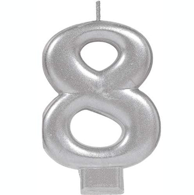 Amscan Numeral Metallic Candle #8, 3 1/4", Silver