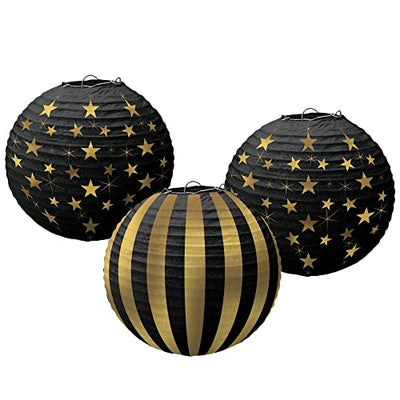 Amscan Party Supplies Hollywood 'Glitz & Glam' Paper Lanterns (3 ct), 9 1/2", Multi Color