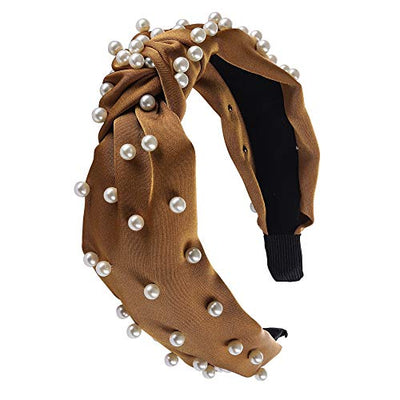 - ELEGANT satin top-knot comfort-fit headband covered in faux pearls.